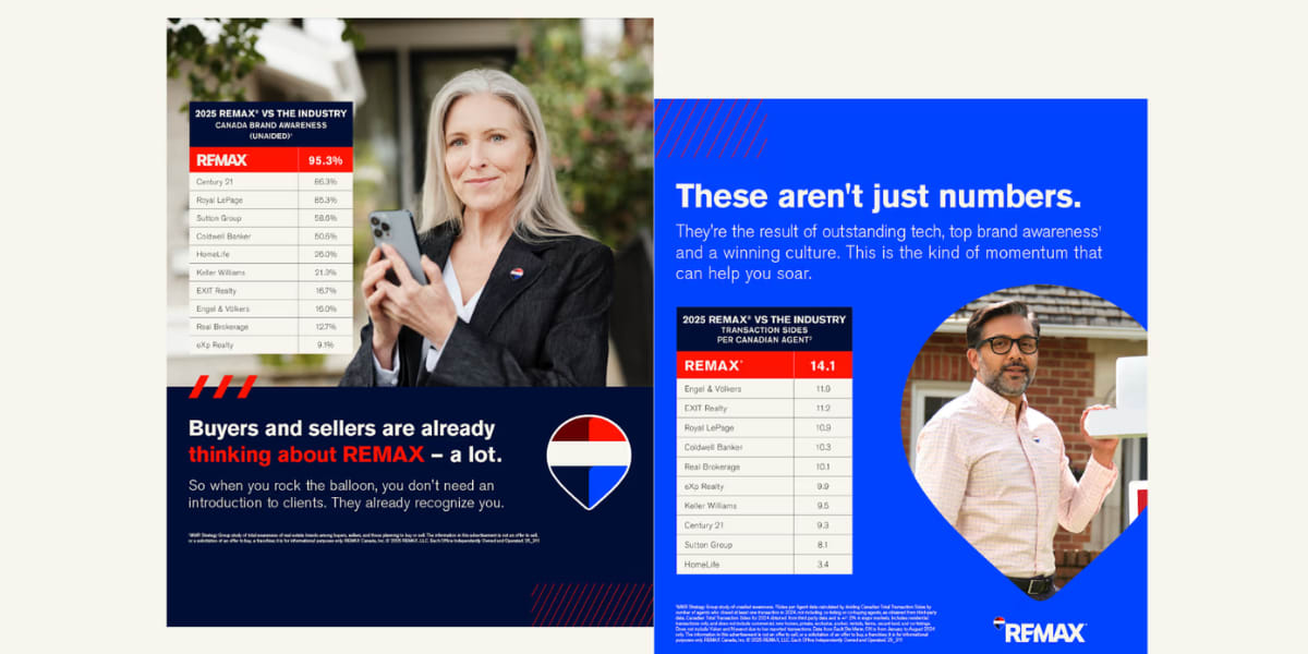 Utilize these social graphics in your recruiting efforts to showcase how REMAX outperforms in sides per agent and brand awareness.