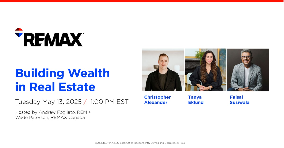 Join guests, Christopher Alexander, Tanya Eklund and Faisal Susiwala, as they share their real estate journeys, how they’ve fine tuned their careers to become wealth-builders and experience-based advice for anyone just getting started with real estate, investments and more. Hosted by REM’s Andrew Fogliato and RE/MAX Canada Executive Director, Wade Paterson.