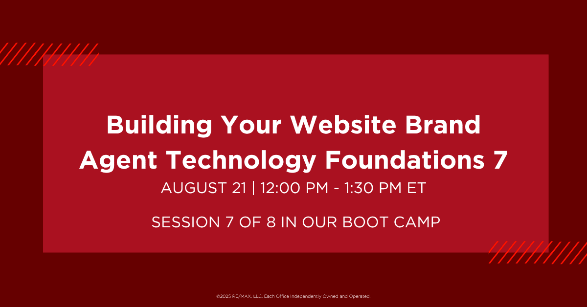 Attend this 90 minute interactive workshop to set yourself up for success by establishing your personal brand using tools like Blogs, Custom Homepage Widgets, and the Pages Editor within MAX/Tech powered by BoldTrail to showcase your unique value in the market. (US + Canada RE/MAX LLC Regions + Independent Regions) Session 7 of 8.