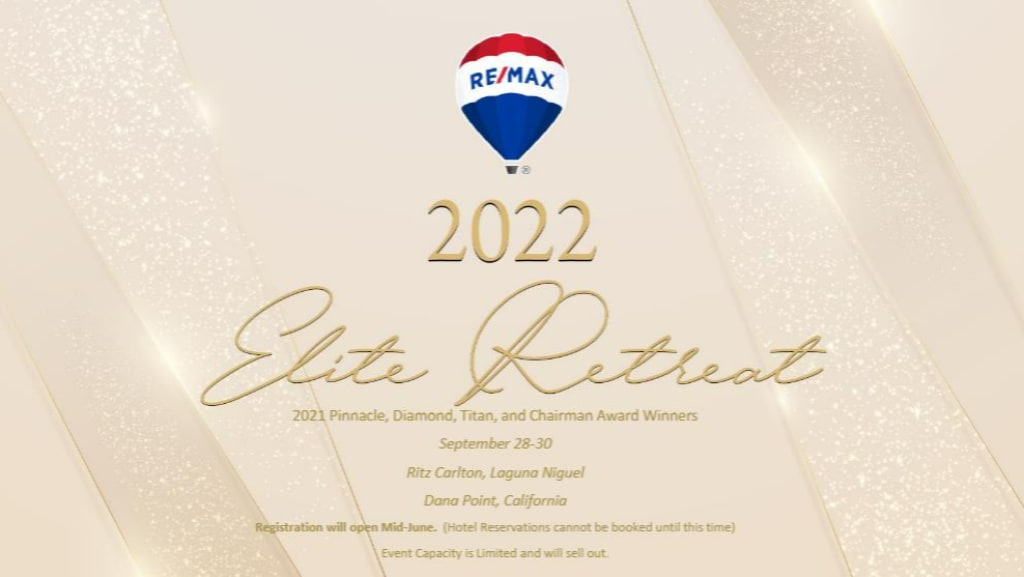 As a team leader or individual 2021 recipient of a RE/MAX® Pinnacle, Diamond, Titan or Chairman Award, you’re invited to join us at the exclusive Elite Retreat in honor of your achievement.
