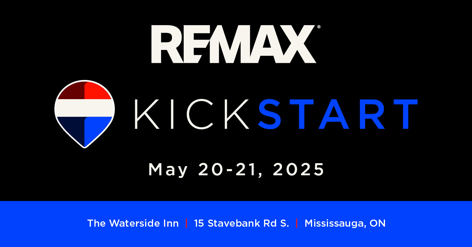 Whether you’re new to RE/MAX or a seasoned agent who wants a refresher to kick your career into high gear, this is your chance! Don’t miss out on Kickstart, a RE/MAX orientation event. Learn how to leverage big brand support from the #1 name in real estate* to help you get a competitive edge and build your business. Attend for a chance to network with peers, make connections and learn from industry experts at the beautiful Waterside Inn Hotel in Mississauga.