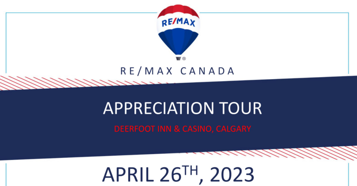 The RE/MAX® Canada Appreciation Tour is coming soon to a city near you! This is our opportunity to thank you for all you do to make RE/MAX to be the #1 real estate brand in Canada. Join the RE/MAX Canada regional team for a quick look at what’s to come in 2023 followed by a networking reception with your local peers.