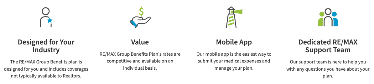 The RE/MAX Group Benefits Plan is designed for Realtor’s and brokerage employees and includes benefits like Dental, Prescription Drugs, Massage, Chiropractic, Travel Insurance and much more.