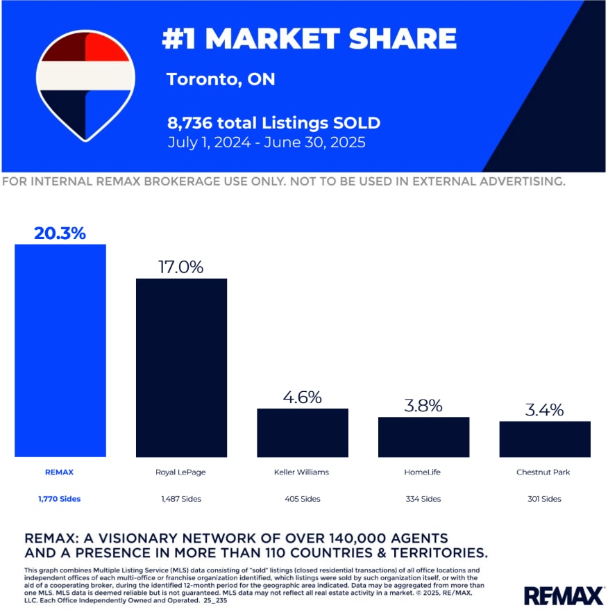 The #REMAXHustle never stops! As the most productive real estate network, we continue to secure market share all over the REMAX Canada footprint. The 2025 Q2 #1 Market Share Reports have been released and are available to download. Congratulations on achieving the #1 spot for listings sold in numerous markets across the nation.