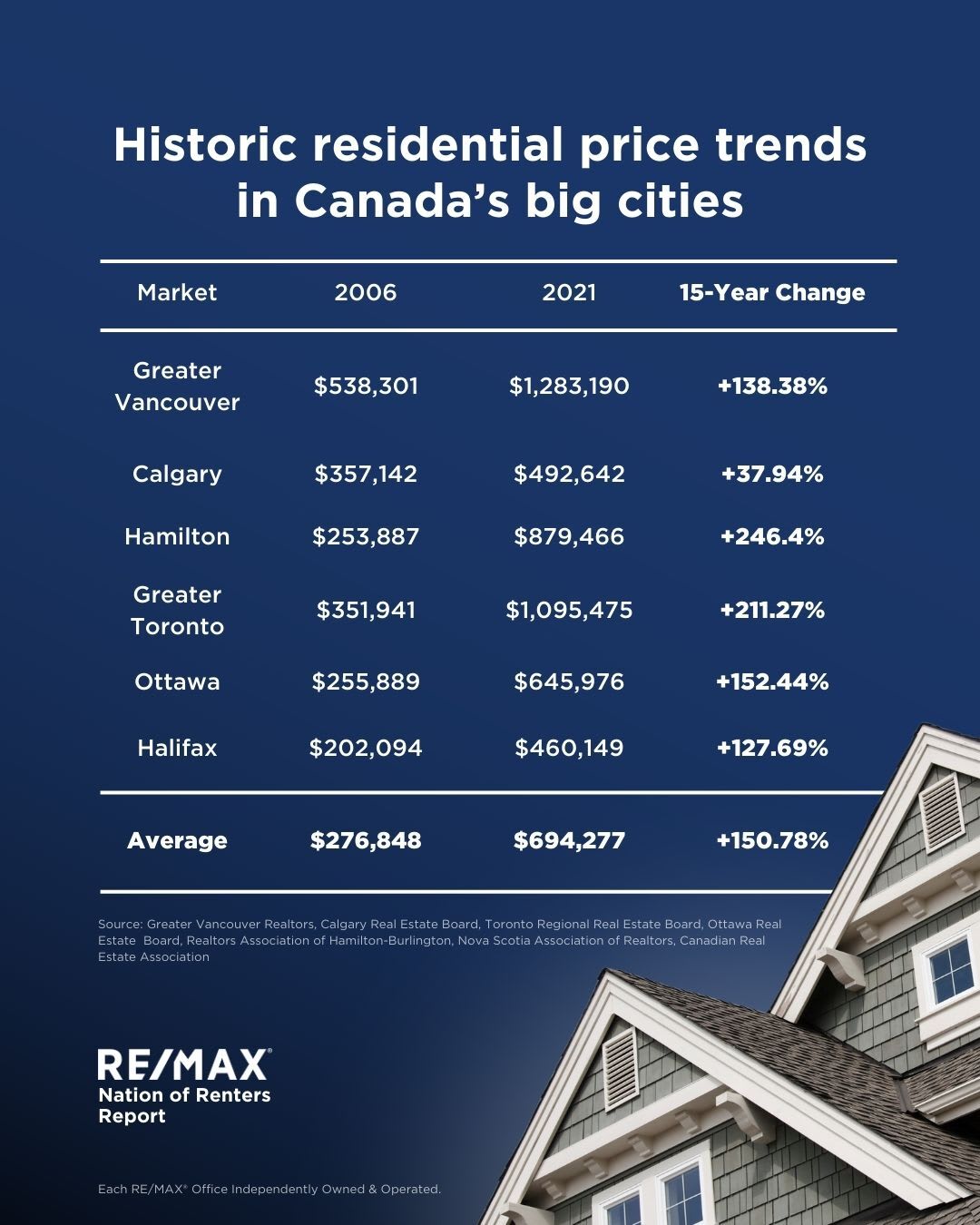 The latest RE/MAX Canada report examined how price appreciation, rapid population growth, and a limited supply of affordable housing stock have propelled rental markets in six major Canadian cities in recent years.