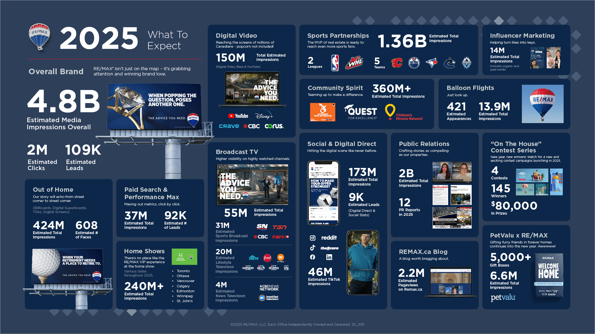 In 2024, the marketing fund provided RE/MAX with the opportunity to elevate the brand’s visibility and reinforce the value of a RE/MAX agent like never before. We successfully expanded our reach to new audiences and markets, helping your business stay top-of-mind with consumers across Canada.