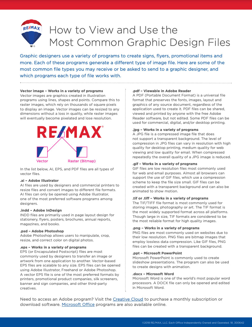 Graphic designers use a variety of programs to create signs, flyers, promotional items and more. Each of these programs generate a different type of image file. Here are some of the most common file types you may receive or be asked to send to a graphic designer, and which programs each type of file works with.