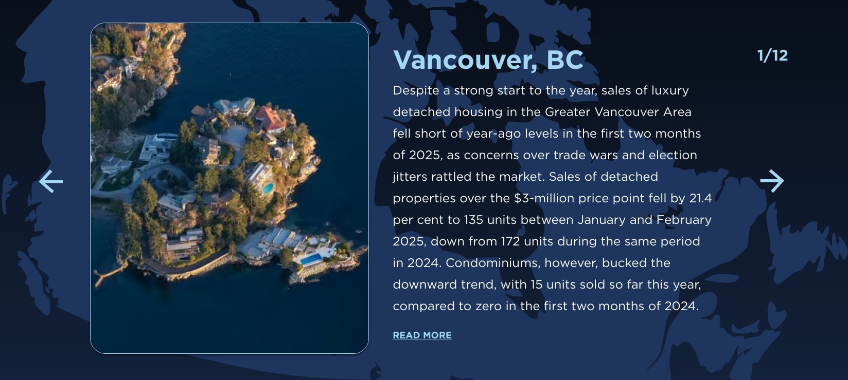 Explore regional luxury insights across 12 major Canadian housing markets.