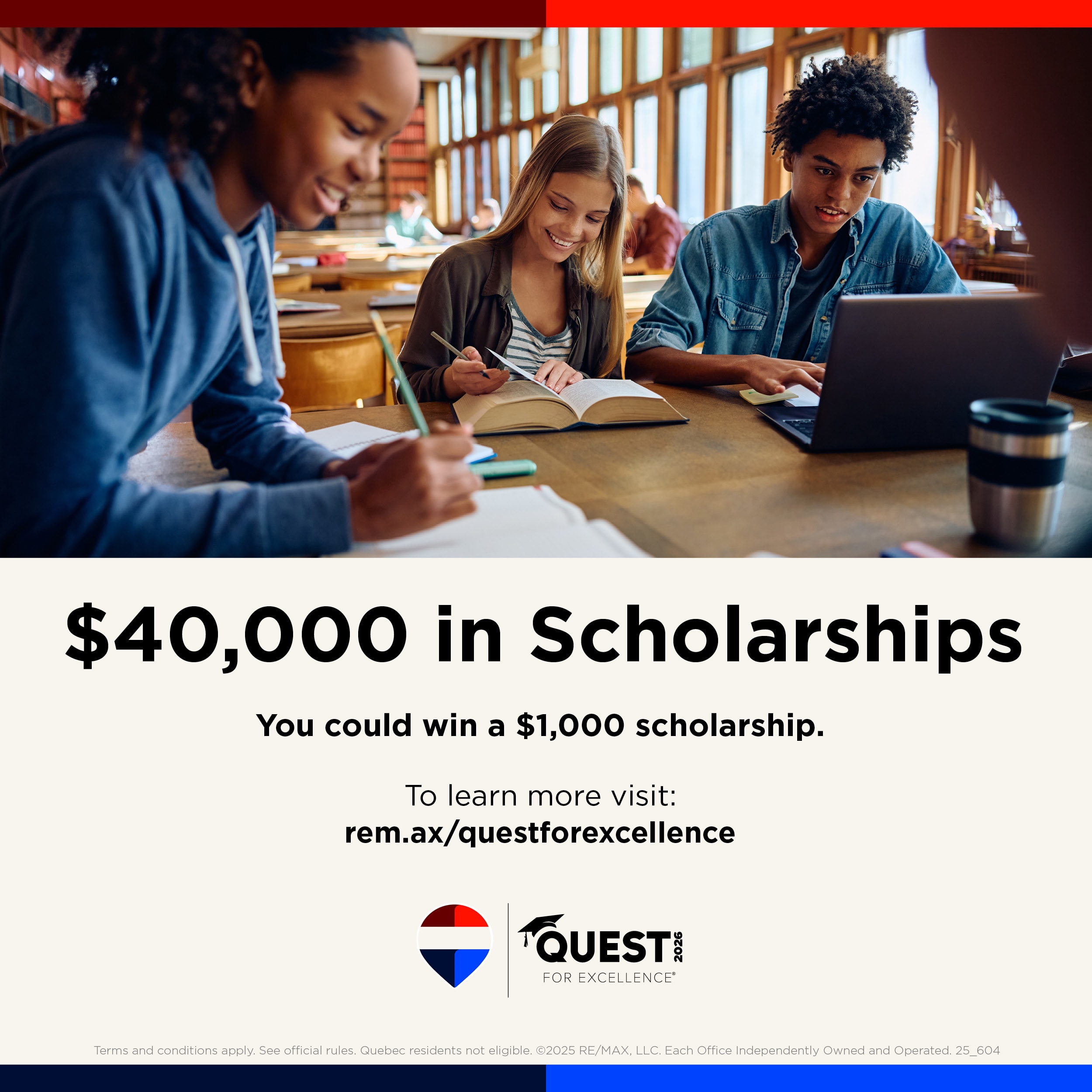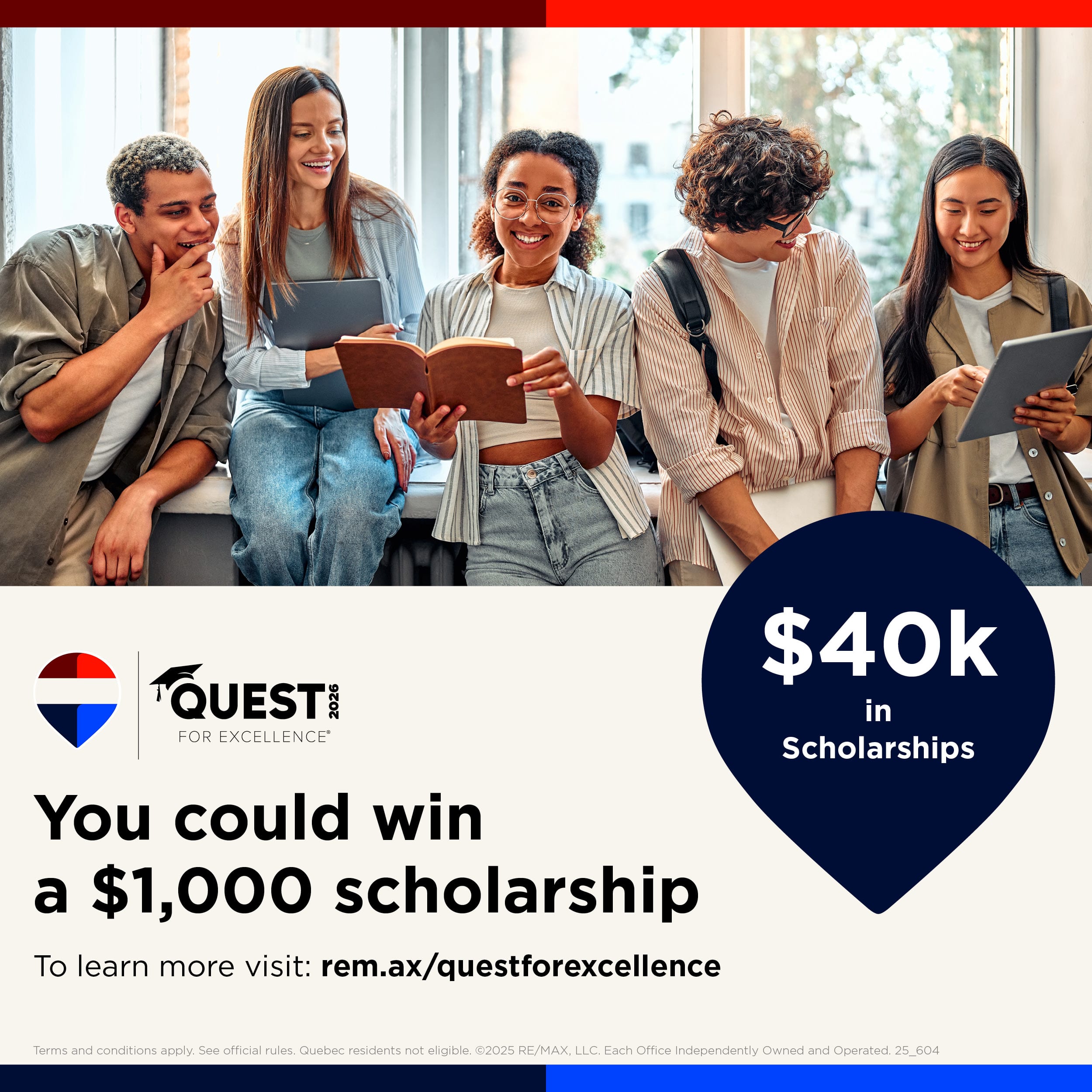 The REMAX Quest for Excellence scholarship program is now accepting essay submissions until March 6, 2026. REMAX Canada is pleased to offer 40 scholarships of $1,000 each to students across Canada (except for Quebec).