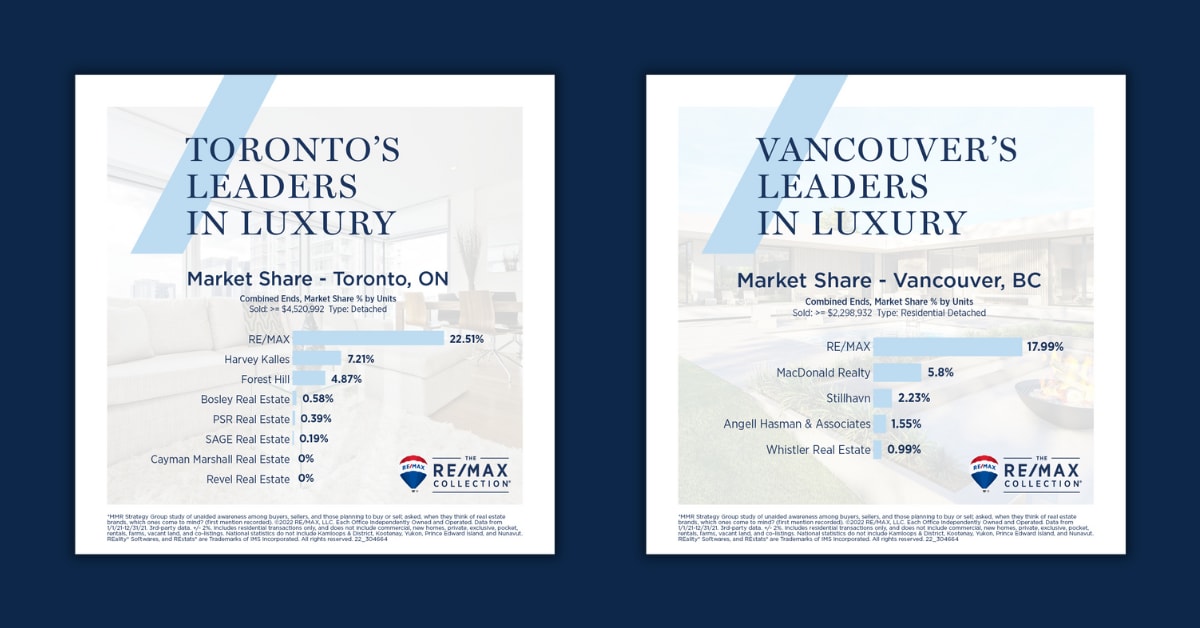 RE/MAX, a global real estate powerhouse with sizeable market share across Canada, is renowned for its innovative entrepreneurial approach, extensive brand presence, advanced technology tools, and a vast network of experienced professionals.