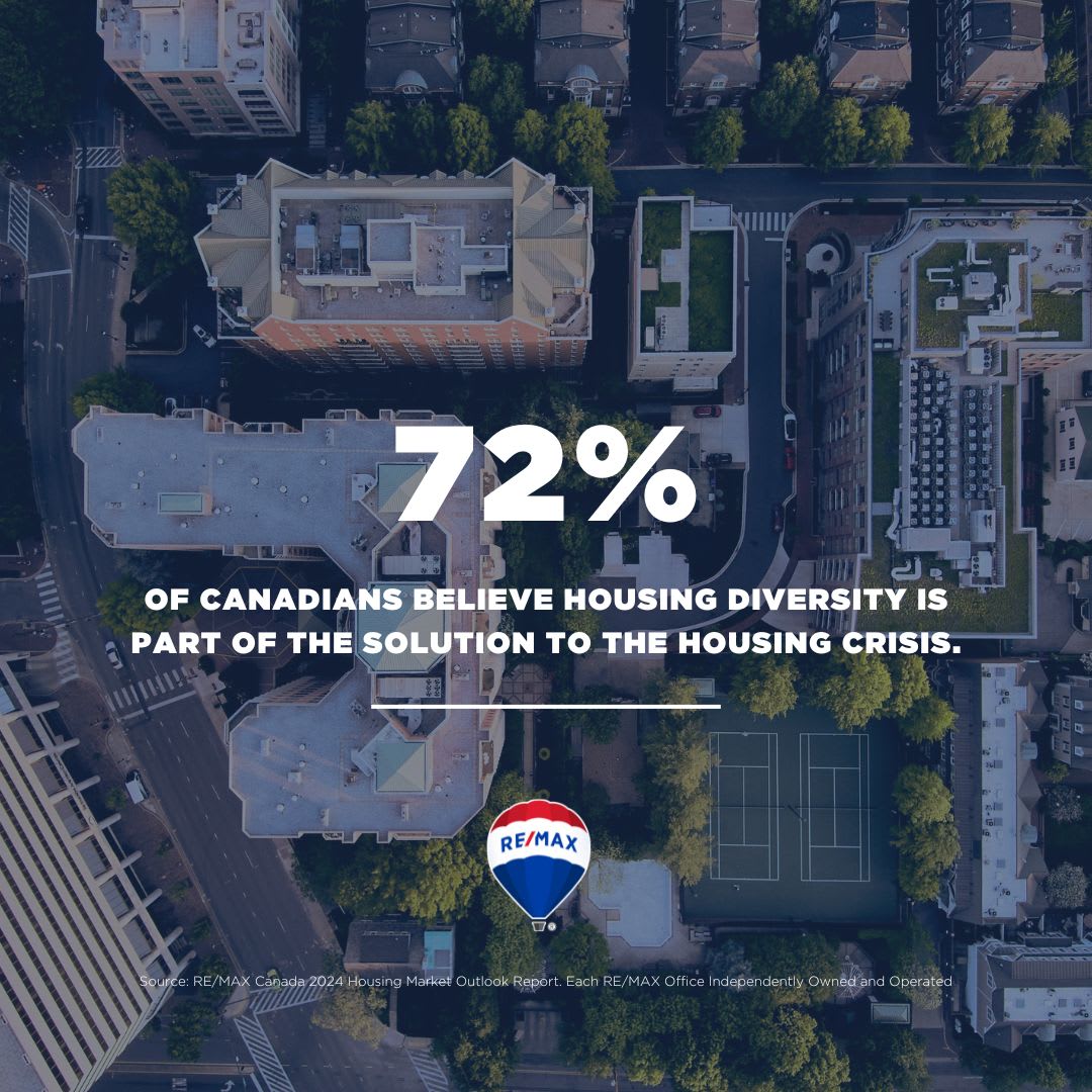According to a Leger survey commissioned by RE/MAX Canada as part of the report, the majority of Canadians (72 per cent) believe that as municipal, provincial and federal governments make plans to increase housing supply, it’s important that they consider the diversity of the new housing that’s developed. Explore the interactive report on remax.ca to learn more and share the national social graphics and reels to help keep your network informed on market trends.