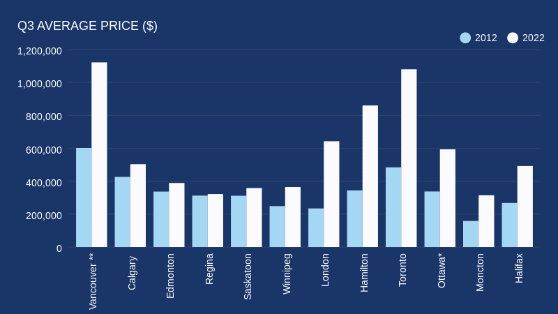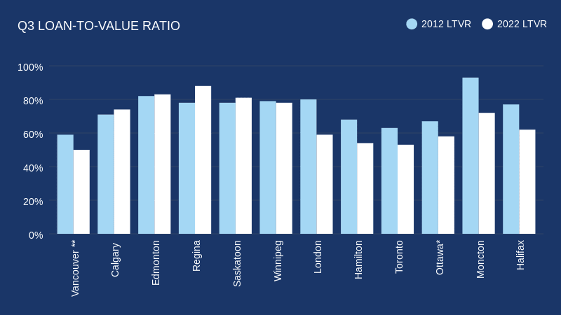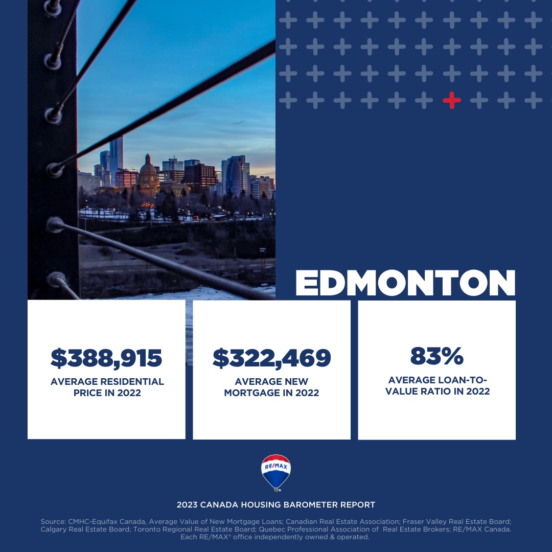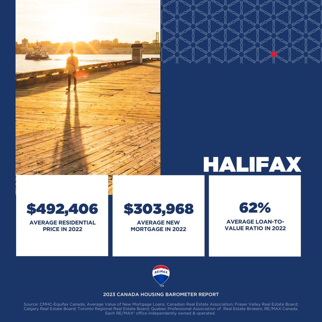 The RE/MAX 2023 Canada Housing Barometer Report examined average price and new mortgage values published by CMHC-Equifax Canada in 12 major markets from British Columbia to New Brunswick, to compare loan-to-value (LTV) ratios between Q3 2012 and Q3 2022.
