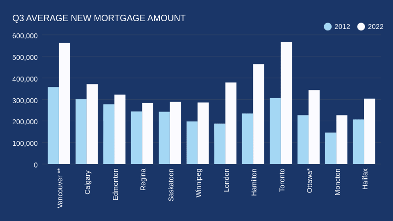 The RE/MAX 2023 Canada Housing Barometer Report examined average price and new mortgage values published by CMHC-Equifax Canada in 12 major markets from British Columbia to New Brunswick, to compare loan-to-value (LTV) ratios between Q3 2012 and Q3 2022.