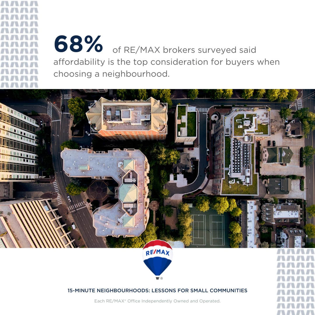 - 68% of RE/MAX brokers surveyed said affordability is the top consideration for buyers when choosing a neighbourhood.