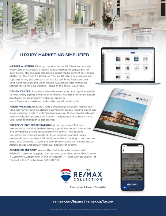 REMAX has created a unique brand identity for luxury homes. Listings that meet or beat the set threshold for an area will be displayed on remax.ca/luxury.